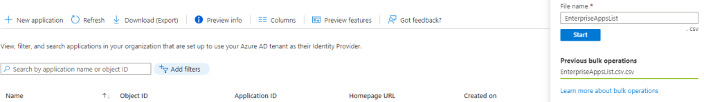 This is done via the portal and not via PowerShell for practicality. If you are not interested in reviewing Microsoft Applications, filter the csv file to just keep “Enterprise Application” under applicationType. This will greatly improve the processing time.