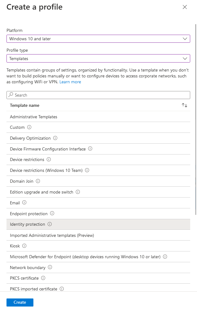 Under Platform, select Windows 10. Under profile type, select Settings catalog. This can also be done via Administrative templates if you prefer. The logic below remains the same.