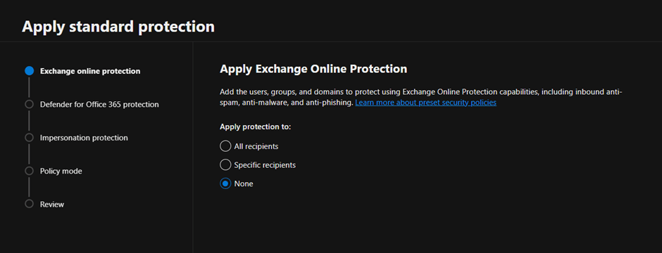 On a customer implementation I found the following error while trying to configure the Microsoft Baselines for Defender for Office 365: